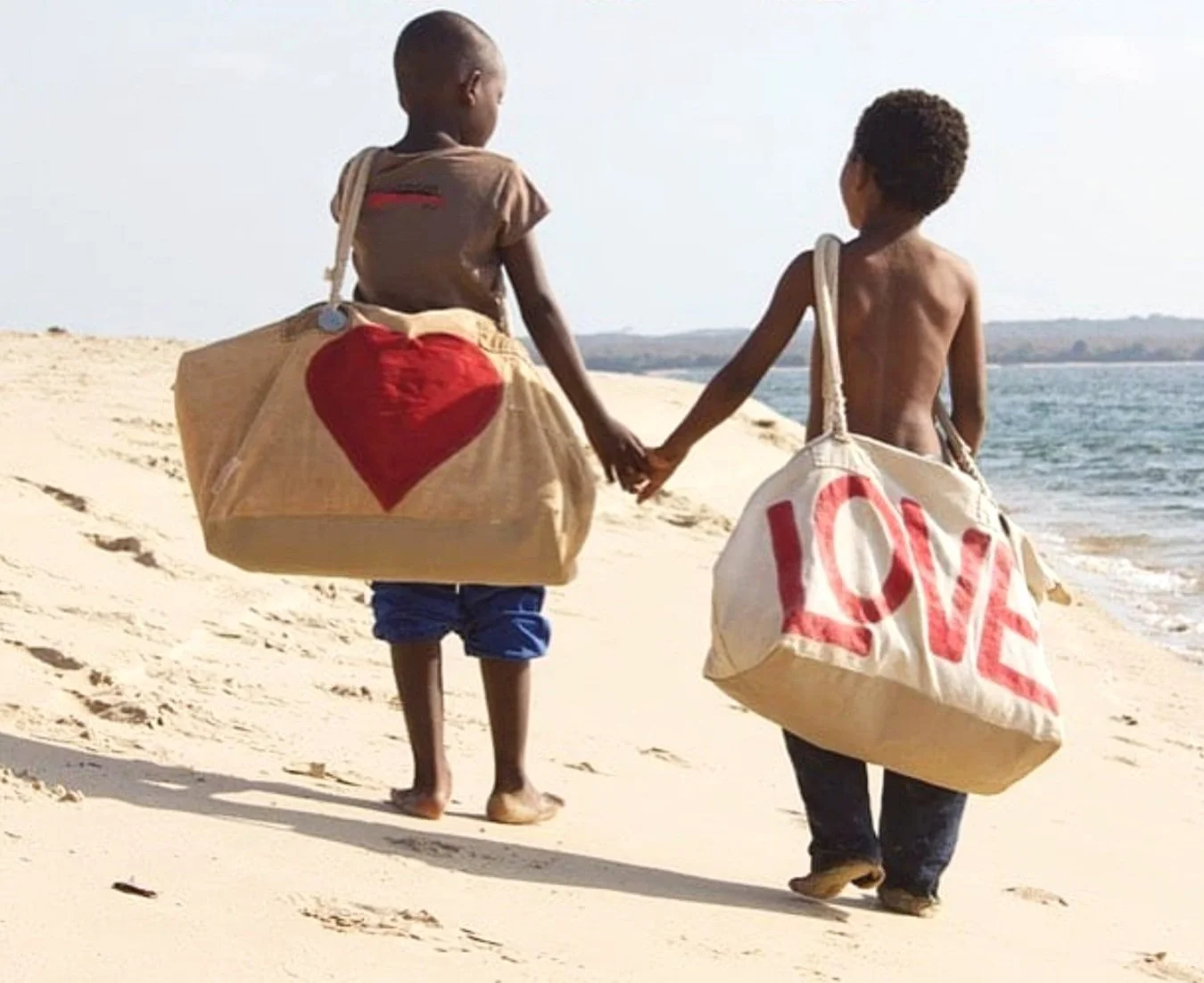 From here these two creative minds added paint, motifs and words and the Tanga’s were transformed into unique, hand crafted pieces. Other fisherman would join them, left jobless after the overfished waters of the areas failed to offer enough fruits to supply them with a living. These men and women were retrained in sewing, design and in the sourcing of the Tanga’s and the shells used in the beautiful creations.